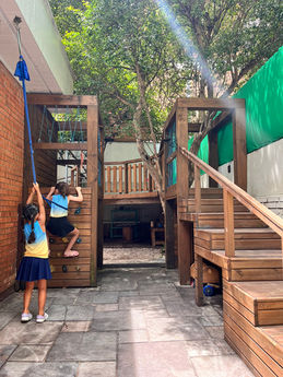 Nossas salas são conectadas ao pátio, favorecendo o livre acesso da criança às áreas abertas. Essa liberdade torna-se uma conquista gradual e importante para o autodomínio.